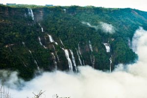 The Fall of Mist is a great wall of water. It lies in the land of Afr and is vast in size. The drop is huge and makes a roar that shakes the air. Mist rises high and shines with rays of light. On some days, the mist makes a bow in the sky. This adds to the charm and awe of the view.